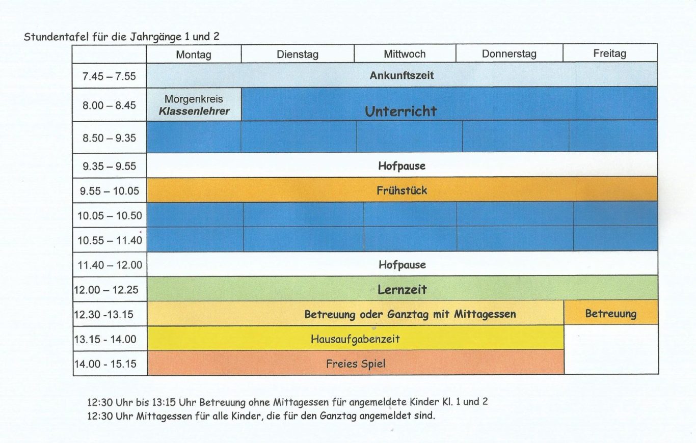Stundentafel Jahrgang 1+2